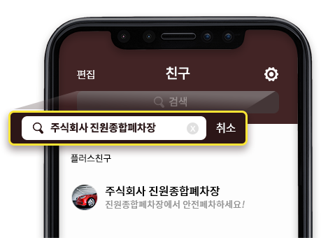 폐차절차안내… 폐차신청·원부조회 무료견인 폐차장입고 폐차증발급 폐차비지급 말소 폐차신청인터넷접수 및 전화를 통해폐차신청을 하실 수 있습니다.차량위치 및 차종과 차량번호, 연락처 등을알려주시면 접수가 가능합니다. 폐차안내폐차 순서 및 폐차 구비서류 등자세한 내용을 안내해드립니다.신청부터 말소대행까지 전 과정을신속하게 처리해 드릴 것을 약속합니다. CONTACT US Tel 031-683-1704 Add 경기도 평택시 청북읍청북중앙로 599-55 카카오톡 채널 주식회사 진원종합폐차장카카오톡 채널을 추가하시면실시간 1:1 상담이 가능합니다.카카오톡채널 바로가기 카카오톡 검색창에서주식회사 진원종합폐차장을 검색하세요.